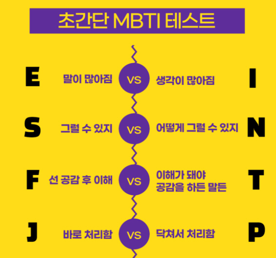 위에서 말했듯이 MBTI 성격 유형 검사에서는 사람을 4가지의 기준으로 분류를 합니다.